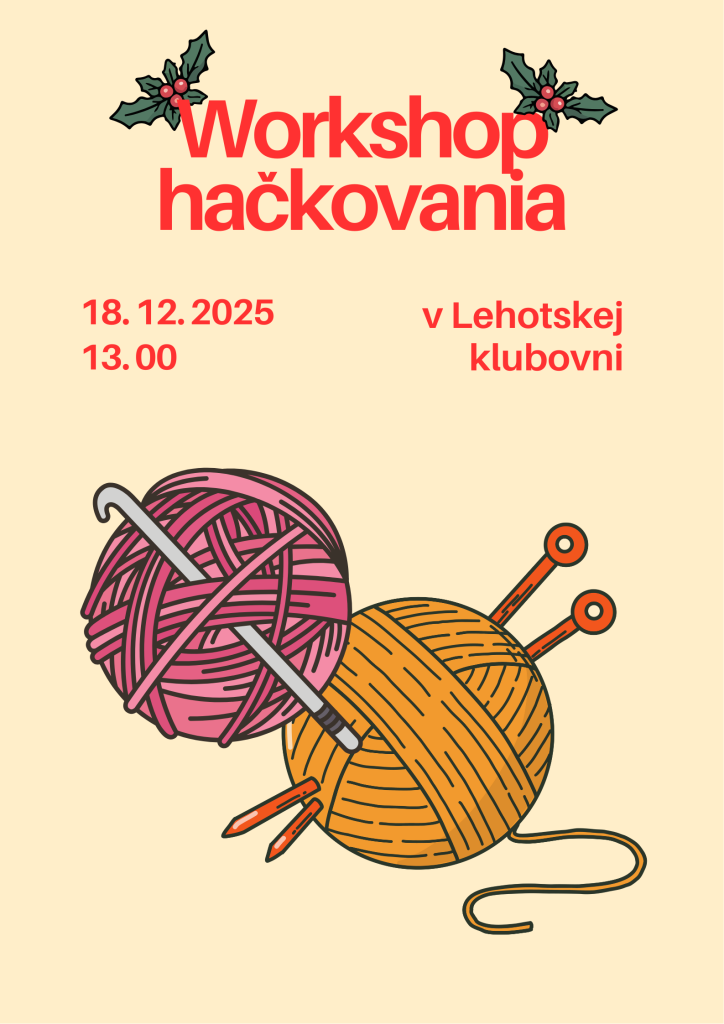 Prineste si hrubšiu vlnu a hrubší háčik. Veľmi sa potešíme, ak si prinesiete vlastný čaj v termoske či pár vianočných koláčikov – radi ich spoločne ochutnáme po workshope a doprajeme si spoločný oddych.